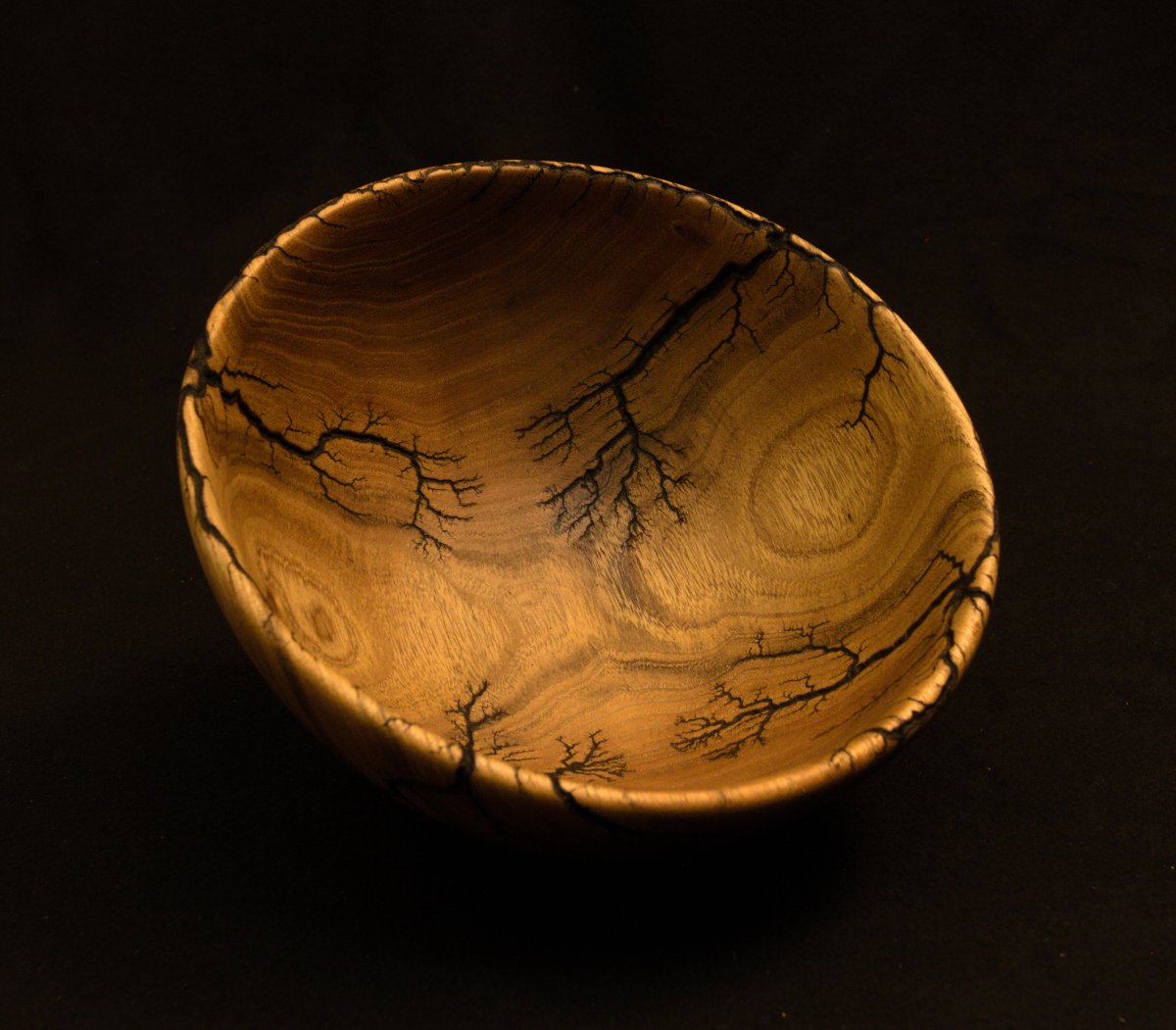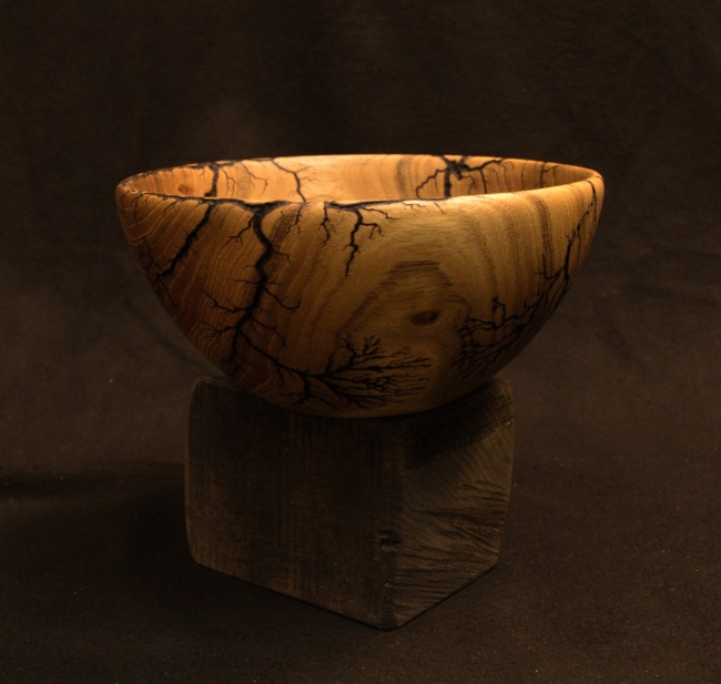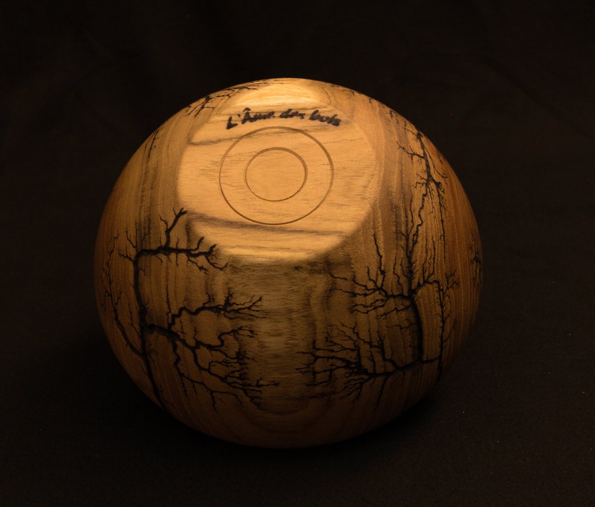 Diamètre 19 cm, profondeur 9 cm, bois robinier pseudo acacia finitions fractales (figure de Lichtenberg)