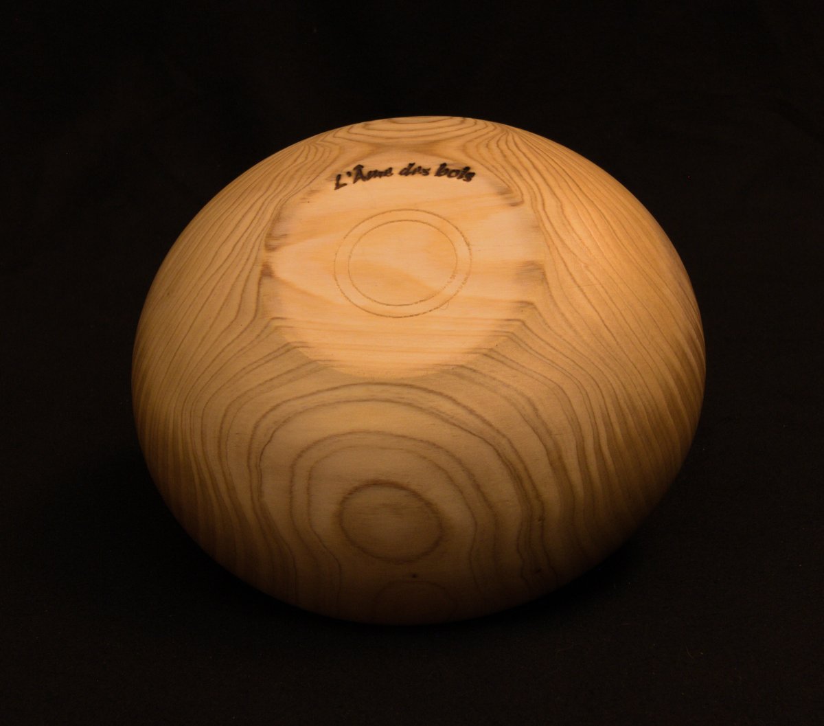Diamètre 19 cm, profondeur 7 cm, Bois thuya (provenance Aveyron).