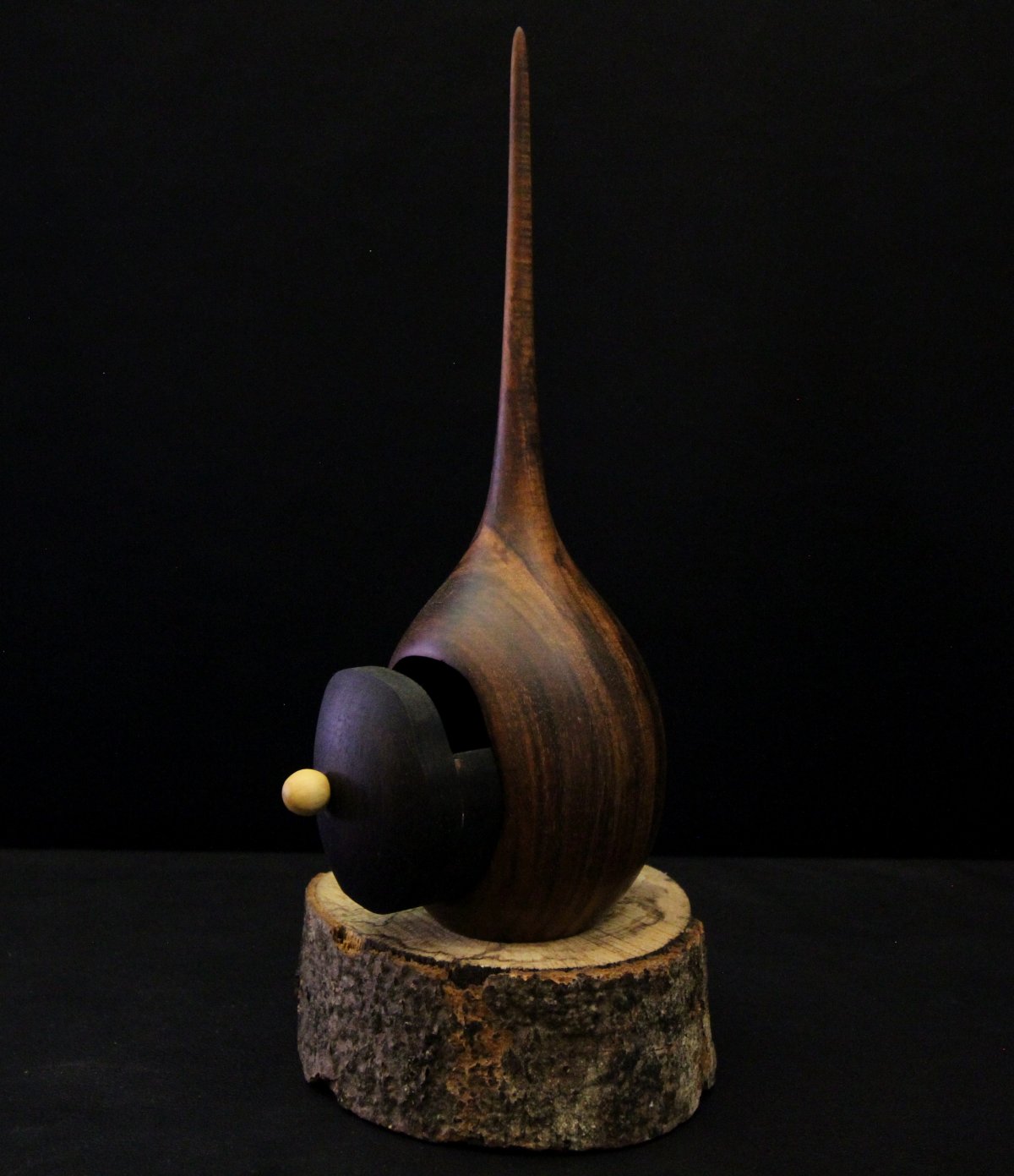 Le Secret de l'Eau est une boîte tournée en bois, J'ai utilisé mon "tour de magicien" pour y découper, avec la plus grande finesse, un tiroir secret. Ce tiroir est une cachette, un sanctuaire conçu pour préserver vos trésors les plus intimes.