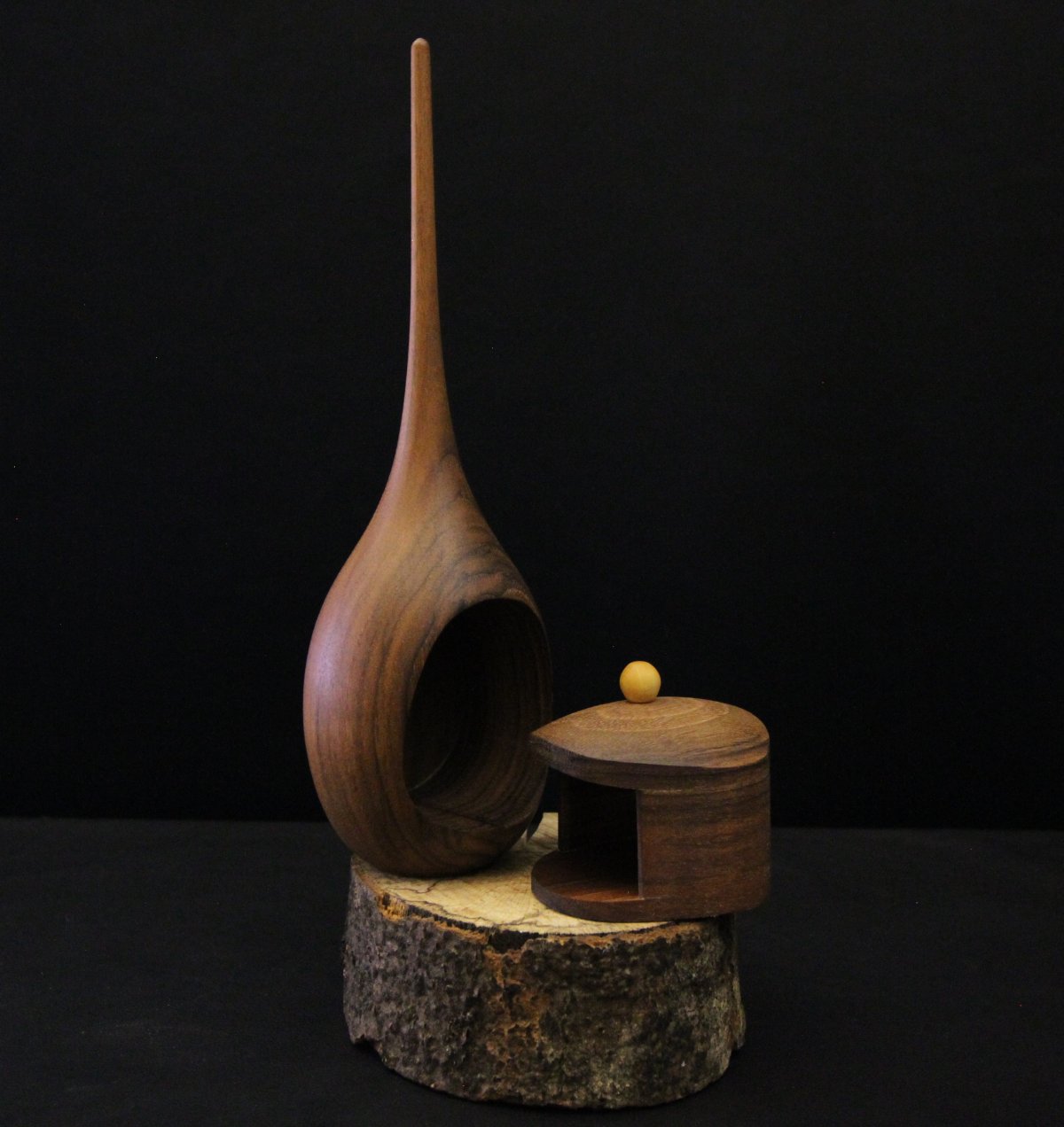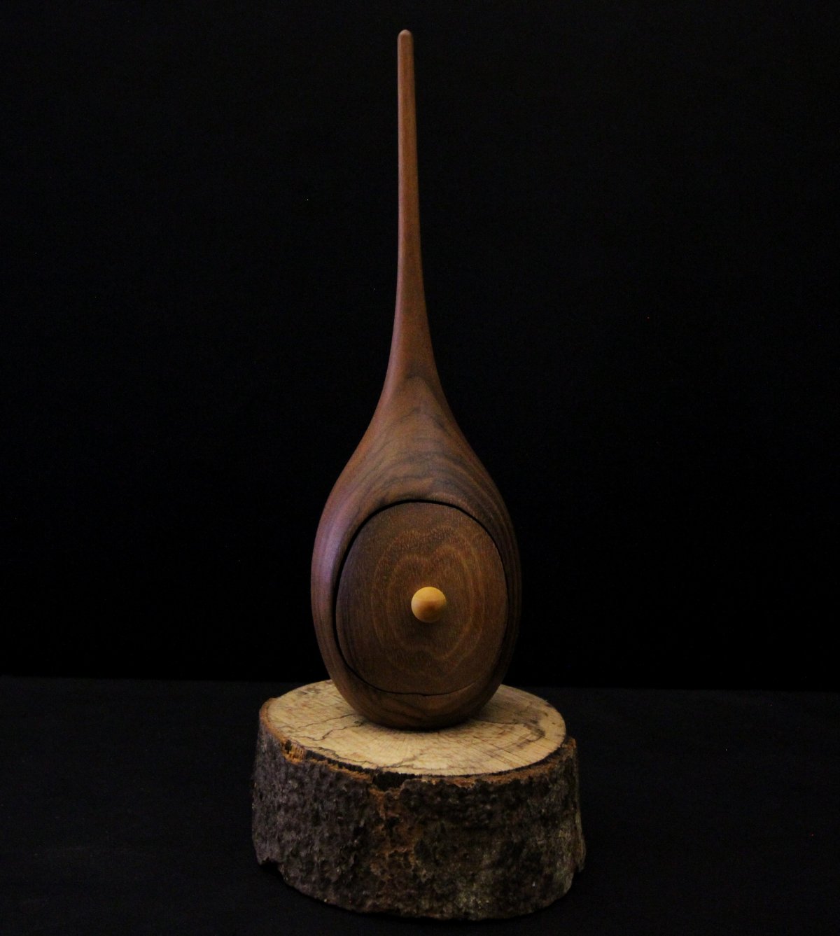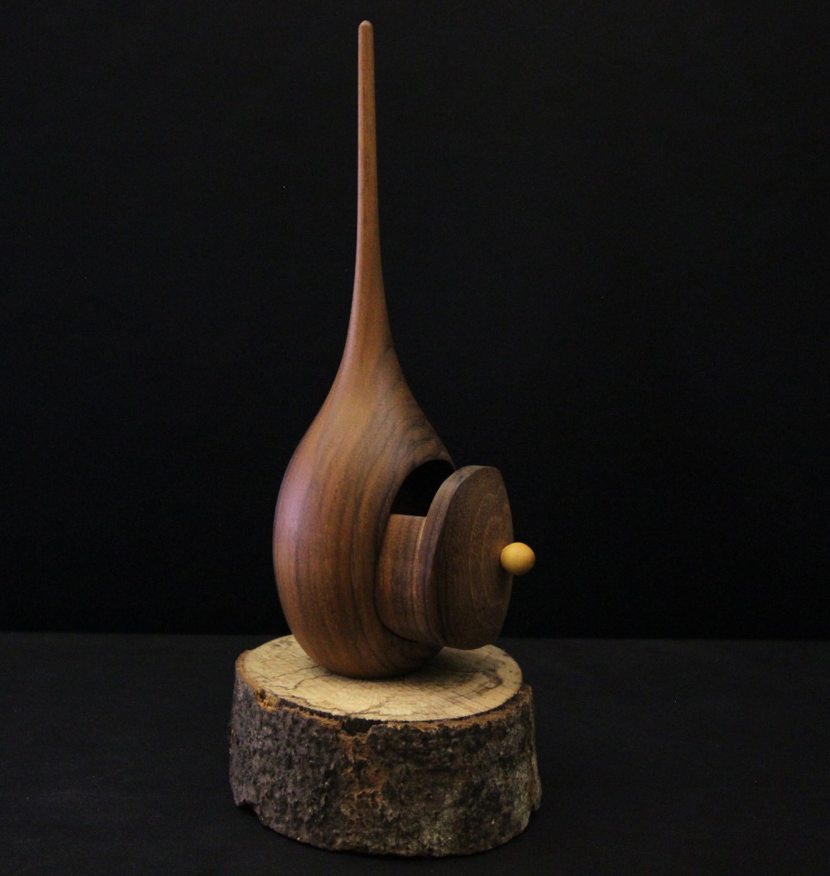 Le Secret de l'Eau est une boîte tournée en bois, J'ai utilisé mon "tour de magicien" pour y découper, avec la plus grande finesse, un tiroir secret. Ce tiroir est une cachette, un sanctuaire conçu pour préserver vos trésors les plus intimes.