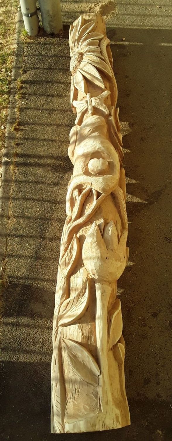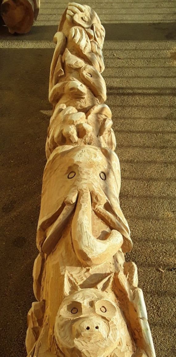 En avril 2014, à Perpignan (66000) en collaboration avec l'association "énergie citoyenne", 8 étudiants ont créé leur totem et ont découvert l'art de la sculpture, alliant 2 matières complémentaires, bois et métal avec mon ami Alexandre Meseguer (forgeron coutelier).
